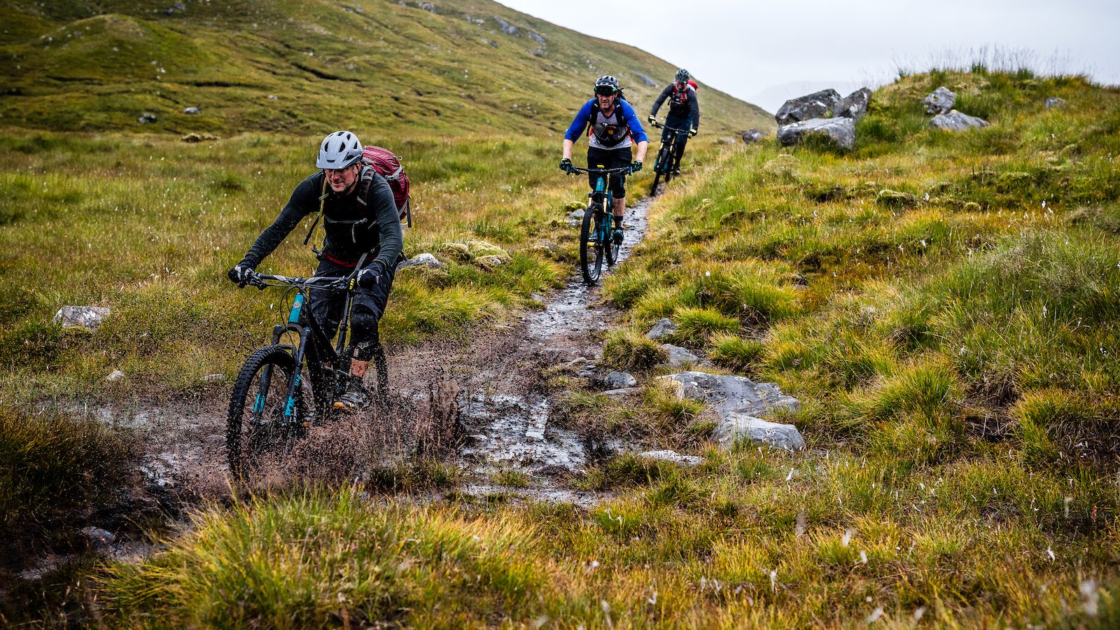 The ideal bike for riding through the Highlands of Scotland is a good quality full-suspension mountain bike with 29” or 27.5” wheels, a dropper seat post, and 130mm -150mm of travel front and rear. We recommend good quality tyres that have robust sidewall protection and that are set up tubeless.